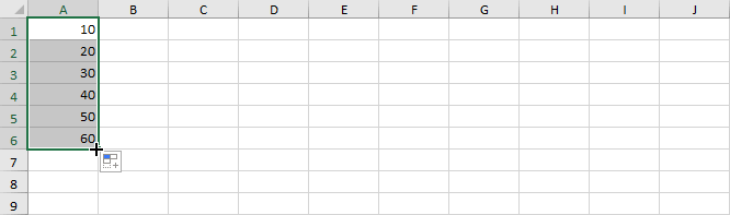 Opmerking: Automatisch aanvullen vult de lijst aan met een logisch patroon gebaseerd op de twee geselecteerde cellen (stap van 10 van cel A1 naar A2).